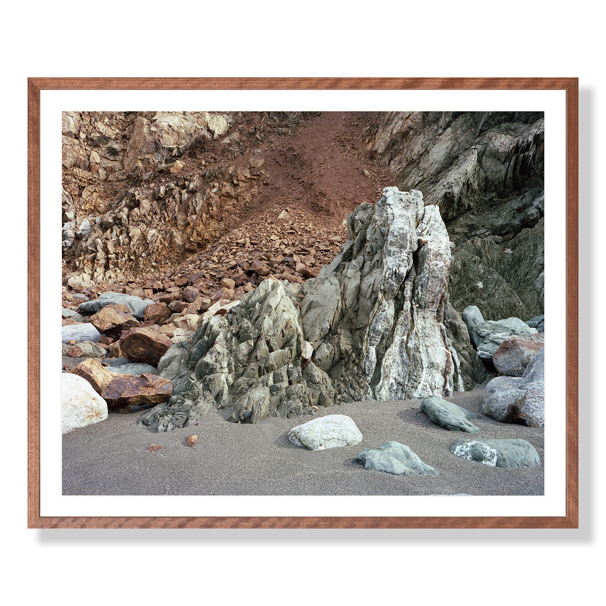 This photograph was taken at Limekiln State Park, which has a small beach that opens up to a beautiful view of the Pacific Ocean. The edges of land, slowly washed away by the relentless tides of the ocean showcase some of the most beautiful geology in California. This particular section caught my eye while taking a short stroll from the kilns down to the beach, a sort of small world of geological towers. The image was taken on 6x7 medium format film and can be printed in various sizes and finishes. All prints come signed, dated, authenticated and numbered.