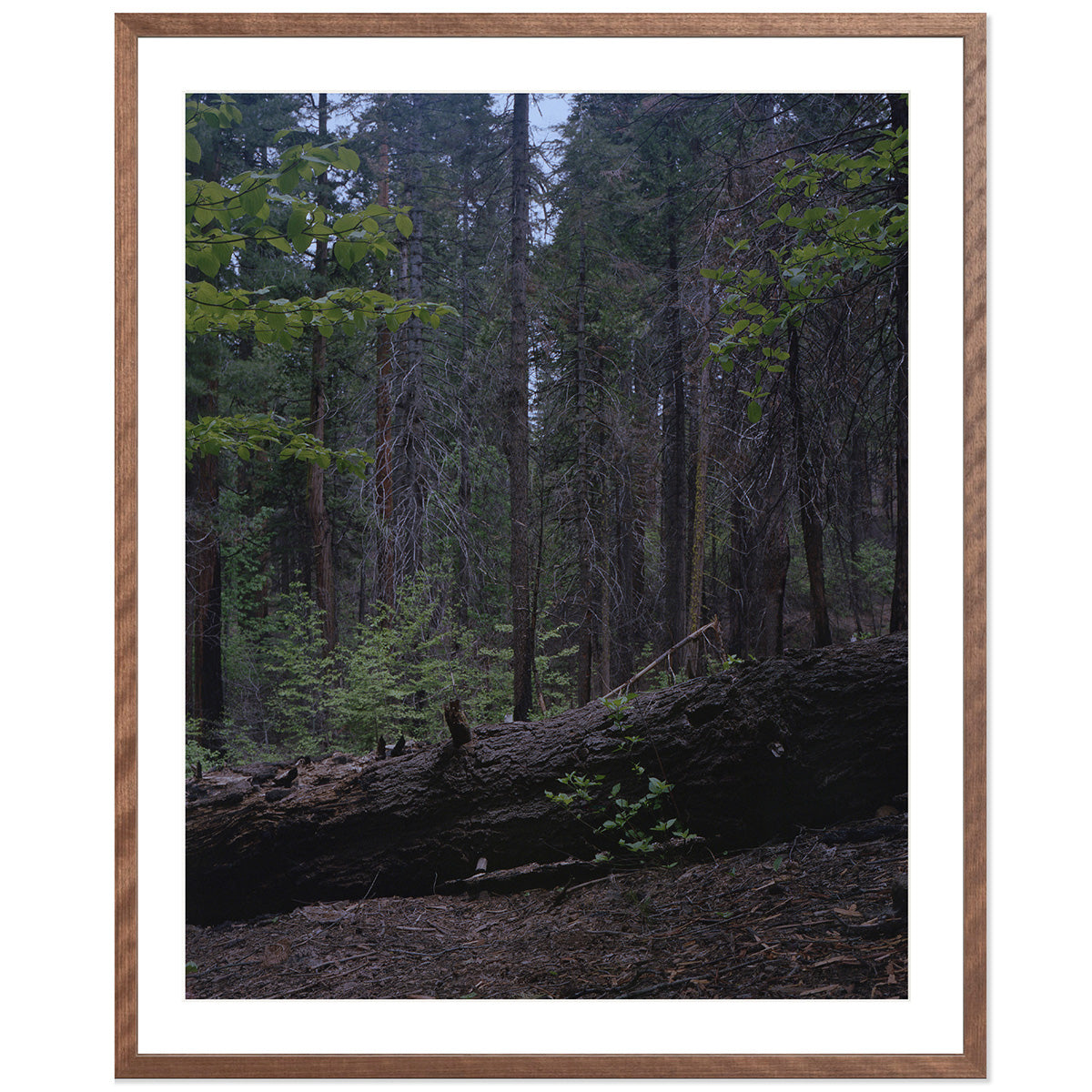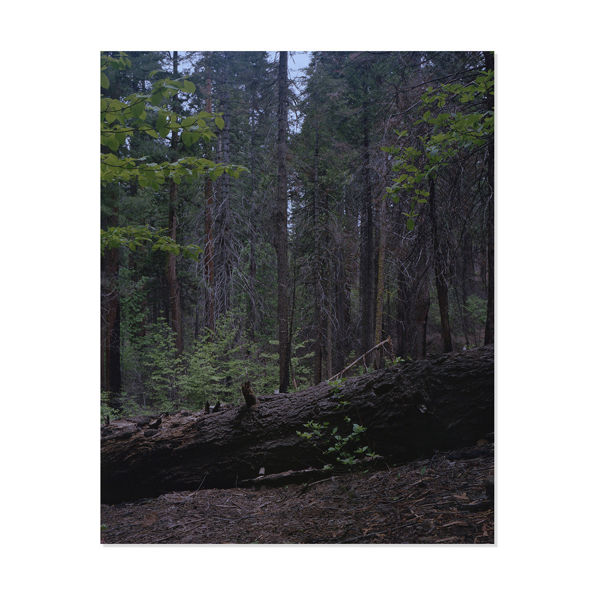 I captured this image while hiking through the Calaveras forest in northern California. This was a longer walk from the Calaveras campground that my partner and I went on with the hopes of reach the river but we had to turn back. As the evening light was fading I captured this fallen tree with a young array of trees in the background. A great example of overcrowded forestry due to over logging, but somehow nature finds a way, even amongst the fallen trees.