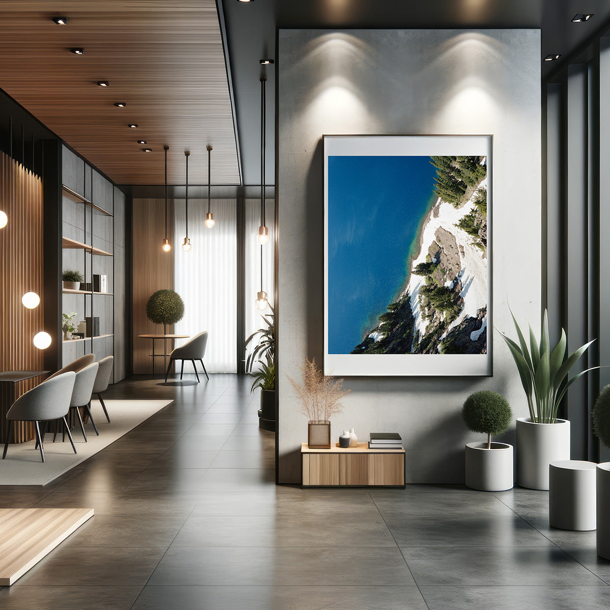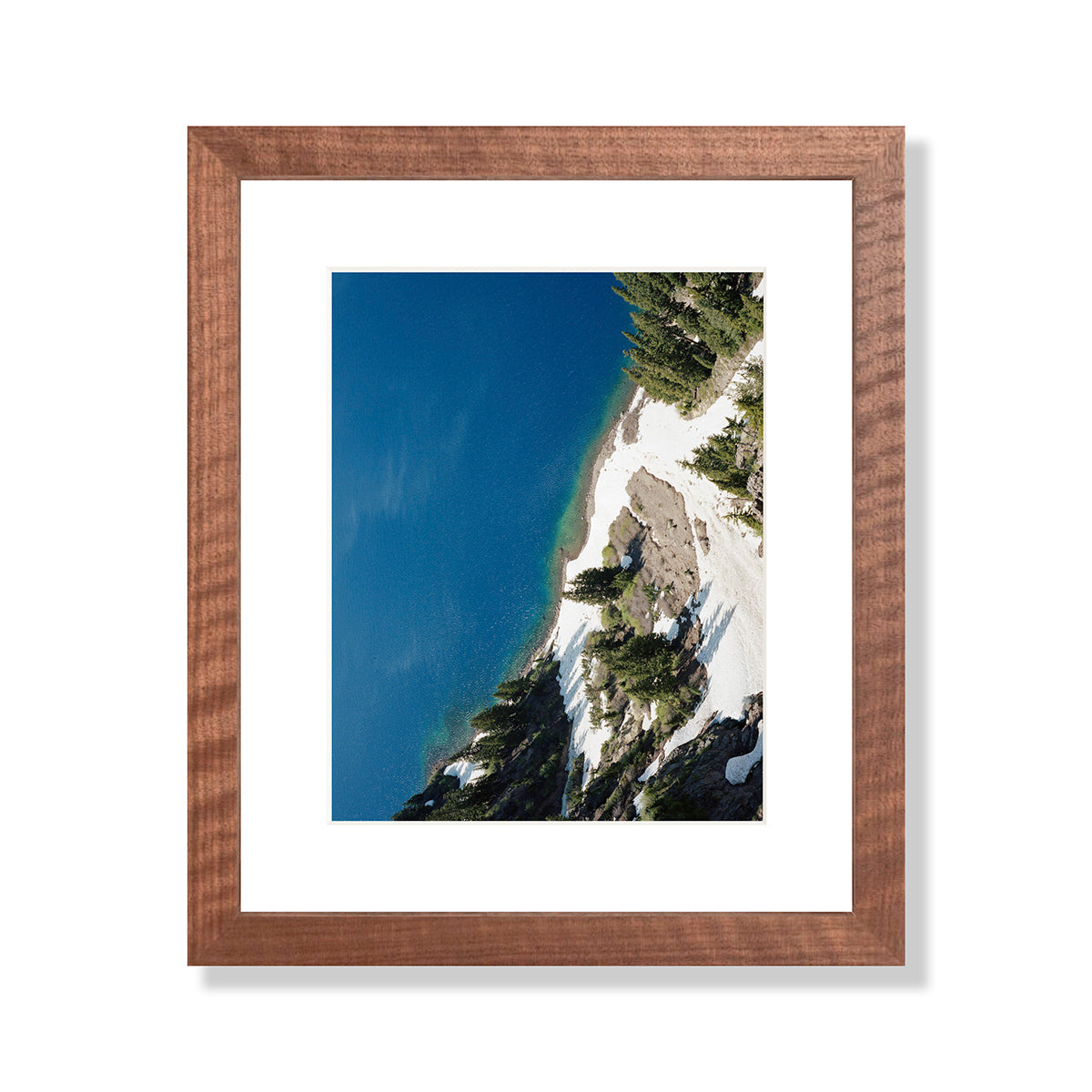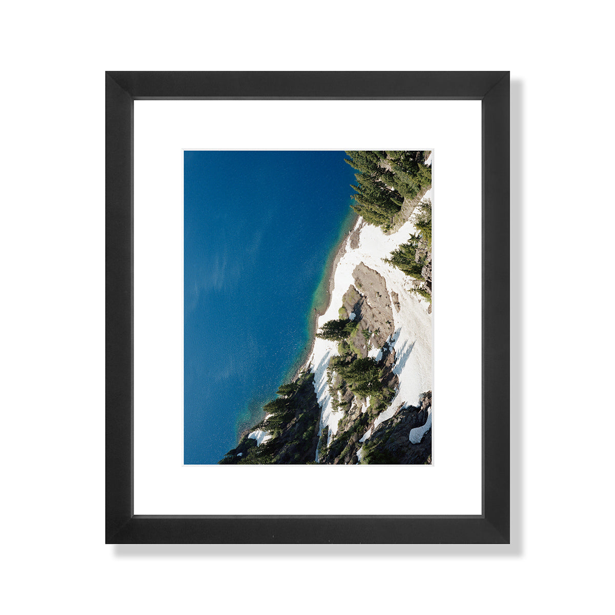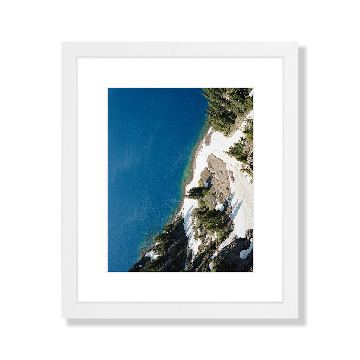 This image has a sense as if it's almost taken from a drone, but it was actually taken from the rim of Crater Lake at "Crater Lake National Park". The lake is actually the remnants of an old volcano, which now hosts a small lake and an island called Wizard Island (quite Tolkien if you ask me). I've always wanted to visit Crater Lake and on whims notice I made myself camp out for one night before meeting a friend in Portland. I must say it was one of the coldest nights of camping that I remember but the view was worth it. This image is a sliver of the volcanos shore line just as the snow began to melt. Although this photograph lives in the California location, Crater Lake is actually in Souther Oregon, once I get the Oregon gallery up we can let it live here :]